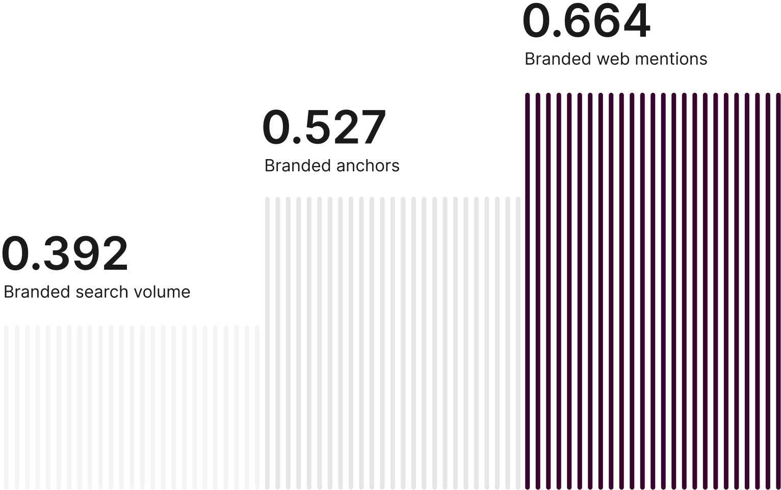 Based on an Ahrefs study of 75,000 brands. Branded web mentions ranked highest for AI visibility. While AirOps analysis show 85% of AI-search brand mentions come from third-party sources.